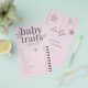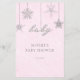 Um chá de fraldas elegante de "adivinhar as características do bebê", com um tema cor-de-rosa para o inverno. Ele apresenta flocos de neve delicados e desenhados à mão dispostos digitalmente com rochas e efeito brilhante, assim como um fundo de textura rosa. Parte da Coleção de Chás da Bebê de inverno Rosa.