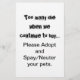 Demasiadas mortes... Adotar panfletos Spay/Neuter: a sobrepopulação de animais de estimação é um problema sério em todo o mundo. Partilha o coração ver cães, gatos e outros animais criados e vendidos em lojas de animais de estimação quando há tantos animais de estimação em abrigos de animais que precisam de casas? Quebra o coração para ver filhotes e gatinhos indesejados em nascer por causa de pessoas que não queriam se incomodar em pegar mama e papa cachorros, gatos e quaisquer outros animais mortos e castrados? Esta design é para você! O texto é "Muitas morrem quando continuamos a comprar... Por favor, Adote e Spay/Neuter seus animais de estimação."