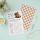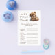 Adicione diversão ao seu chá de fraldas com este jogo de palavras fofo! Apresentando um ursinho de pelúcia sonolento, esta carta encantadora desafia os hóspedes a desembaraçarem palavras relacionadas a bebês. Uma maneira perfeita de manter todos entretidos!