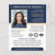 Folhetos de Notícias Profissionais com fotografia de perfil, logótipo e símbolos de acreditação. Este modelo editável é personalizado com um nome, credenciais, área servida, informações de contato e lista de serviços. Você pode adicionar o logotipo e as marcas de certificação de sua empresa para marcas. Uma combinação clássica de estilo tradicional e contemporâneo, criando uma aparência elegante e amigável, com texto totalmente personalizável para ajustado da marca de sua empresa. Perfeito para um notário público, agente de assinatura de empréstimo, agente de entrega de confiança notarial certificada (CNTDA), notário móvel, postilha ou outra função legal — uma maneira eficaz de anunciar sua empresa! Cores impressas: azul marinho muito escuro, branco e cor dourada. Compre a coleção on-line para obter ideias e suprimentos de produtos mais populares, projetados para notários!