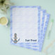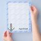 Âncora com ilustração de corda sobre o fundo uniforme azul claro das ondas. Texto personalizado.