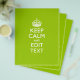 Seu ditado personalizado "Mantenha Calma" em um belo decor personalizado de cor verde-acento. Um estilo "Manter Calmo" personalizado dizendo em um presente gentil. Humorístico ou caprichoso experimente suas palavras criativas em duas linhas editáveis de texto. Lembre-se de usar letras CAPITAL para obter melhores resultados. Use o link "Perguntar a este Designer" para entrar em contato conosco com suas solicitações especiais de design ou para obter assistência com suas necessidades de personalização.