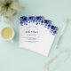 Por favor, note que este convite está no papel de folheto e é muito fino. Os envelopes não estão incluídos. Para convites mais espessos (mesmo design) visite nossa loja. Um fundo branco, decorado com flores azuis e brancas. Personalize e adicione seu nome e detalhes. Fundo: fundo azul.