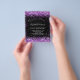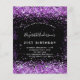 Por favor, note que este convite está no papel de folheto e é muito fino. Os envelopes não estão incluídos. Para convites mais espessos (mesmo design) visite nossa loja. Um convite moderno, na moda e glamouroso para uma festa de aniversário de 21 ruas (ou qualquer idade). Um fundo preto com poeira brilhante púrpura. O nome é escrito com um moderno estilo escrito à mão. Personalize e adicione os detalhes da sua festa.