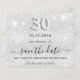 Observe que esta opção Save the date (Salvar a data) está no papel do folheto e muito fina. Os envelopes não estão incluídos. Para salvar o cartão Data (mesmo design) mais espesso, visite nossa loja. Um elegante Salve a Data para um aniversário de 30 anos. Um fundo moderno de aparência fina, decorado com brilho falso, brilhos. Personalize e adicione uma data e nome/idade. O texto: Salvar a Data é gravado com um script de estilo com letra de tendência grande. Número 30 com uma fonte no estilo do balão.