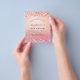 Por favor, note que este convite está no papel de folheto e é muito fino. Os envelopes não estão incluídos. Para convites mais espessos (mesmo design) visite nossa loja. Um convite moderno, na moda e glamouroso para a 50ª festa de aniversário (ou qualquer idade) da mulher. Um rosa dourado e gradiente cor-de-rosa com falso brilho. O nome é escrito com um moderno estilo escrito à mão. Personalize e adicione os detalhes da sua festa.