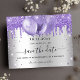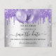 Um fundo com aparência prateada falsa decorado com purpurina falsa roxa, lavanda e balões. Personalize e adicione uma data e nome/idade. O texto: Salve a data é escrito com um estilo de letra manuscrita grande e moderno.