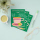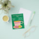Um panfleto adequado para um compro de café ou um compro de café, ou grande abertura com xícaras de chá retrô bonitinhas e coloridas ilustração de café com café contra fundo de menta.Bonita, colorida e retrô. Todo texto é totalmente personalizável para atender às suas necessidades.
