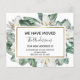 A Palma Tropical de Orçamento Deixa Aquarela Floral Moderna e Elegante Faux Rosa Gold Foil Geométrica Primavera Nós Movemos Novas Casas ou Novos Cartões - inclui uma bela e elegante tipografia de script com flores botânicas modernas e flores e verde para a celebração especial de Nova Casa ou Novo Endereço.