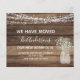 Orçamento Rustic Farmhouse Wood, String Light e Jar of Baby's Breath Flowers Nós Movemos Novos Cartões para Casa ou Novos Cartões - inclui uma bela e elegante tipografia de script com moderna floral para a nova casa especial ou a celebração do novo endereço.