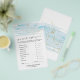 Este jogo de aquarela azul e dourado "Adivinha o Preço Certo" é perfeito para um chá elegante de bebê. O design luxuoso apresenta uma textura azul-clara de aquarela com um salto de belo brilho de ouro falso e uma fonte moderna de escrita de caligrafia. Personalize a frente do cartão com o nome da futura mãe e a data do chá de fraldas. Nota: Este design não apresenta brilho de ouro real. É um gráfico de alta qualidade feito para parecer um brilho dourado.