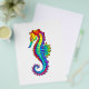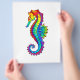 Articulação artificial, brilhante, arco-íris, cavalo de mar poligonal sobre fundo branco. Tatuagem brilhante.