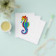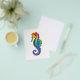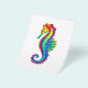 Articulação artificial, brilhante, arco-íris, cavalo de mar poligonal sobre fundo branco. Tatuagem brilhante.