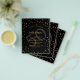 Por favor, note que este convite está no papel de folheto e é muito fino. Os envelopes não estão incluídos. Para convites mais espessos (mesmo design) visite nossa loja. Um convite de aniversário glamouroso para ele e para ela. Um fundo preto decorado com estrelas douradas falsas. Personalize e adicione um nome e detalhes da parte. Texto colorido do ouro. Número de idade como marca d'água. Fundo: fundo preto e estrelas ouros.