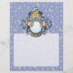 Um velho feiticeiro com capa azul olhando para a bola mágica de cristal.