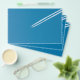 Flyer Avião voador sobre fundo azul