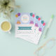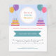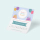 Um folheto de organizador de festa & eventos decorado com bolos de aniversário e balões coloridos em tons de cores alegres. Inclui uma lista de serviços e informações de contato. Perfeito para organizadores de eventos, como festa de aniversário para crianças ou adultos, lançamentos de produtos, chá de bebê, celebração familiar, aniversário de casamento, despedida de solteiro, festa temática, etc.