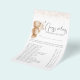 Projetado para coordenar com nossos convites para chuveiros 'Urso e abelha' Bee. Este chá de fraldas bonitinho 'Adivinhem quem', Mamãe ou jogo de Pai, apresenta aspergaminhos de confete de ouro rosa, sobre um urso de pelúcia de Aquarela, segurando um monte de grama-palha de creme com delicados florais de pêssego olhando para uma abelha. Todas as perguntas podem ser editadas, então se você quiser mudá-las você pode! Todo texto pode ser personalizado usando o modelo desde que os estilos de fonte e a cor de fundo também possam ser alterados clicando no link personalizar depois de personalizar. Divirtam-se e adivinhem-se!