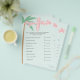 Bebê cor-de-rosa no chá de fraldas de surfe do Conselho adivinha o cartão de jogo do preço certo.
