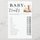 Uma elegante folha de jogos de "suposição das características do bebê" para uma festa de chá de fraldas de menina com um tema de princesa de fada mágica, jardim encantado. Uma ilustração encantadora de aquarela com uma doce princesa de fada num pequeno jardim encantado com um esquema esmeralda verde, rosa e dourado, enfeita esta elegante e adorável folha de chá de fraldas personalizada personalizada de chá de menina. Perfeito para comemoração da primavera, eventos de Páscoa, fête de jardim de verão, chá de fraldas piquenique charcado ou para comemoração do ano inteiro em homenagem aos pais que amam a floresta encantada, tema de fada.