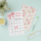 Cartão de jogo Bingo de chá de fraldas de pré-disquete com padrão floral cor-de-rosa e rosa.