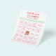 Este jogo único e caprichoso do Bingo do Festival Ugly Sweater de Natal foi feito com um toque de humor e charme. Apresentando uma design ilustrada à mão, o reverso mostra um padrão festivo enfeitado com renas de Papai noel, flocos de neve macios e árvores de Natal, todos rendidos em uma textura aconchegante e semelhante a velo. Adicione este jogo de bingo para borrifar um pouco de alegria na sua festa!
