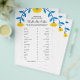 Boho Girassol Jogo "Would She Rather" para Chá de Noiva apresenta arranjo de girassóis pintados à mão em azul e amarelo e modelos de perguntas personalizadas para o jogo de noiva. Um design perfeito para o chá de noiva que combina com o tema de boho, girassol, rústico, country, floral, botânico, jardim, primavera e outono. Por favor, clique no botão personalizar para personalizá-lo com seu texto. Visite minha loja "loveyouart" para outros designs semelhantes ou relacionados.