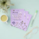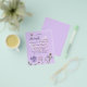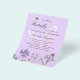 Por favor, note que este convite está no papel de folheto e é muito fino. Os envelopes não estão incluídos. Para convites mais espessos (mesmo design) visite nossa loja. Um fundo colorido violeta e lavanda. Decorados com uma borboleta grande, abelhas e flores silvestres pintadas em violeta e rosa. Personalize e adicione um nome e detalhes da parte.