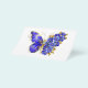 Borboleta de flores cinza, azul, safira, espumante com asa decorada com flores preciosos azuis com folhas de ouro sobre fundo branco.