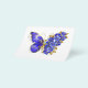 Joias, azul, safira, borboleta de flor cintilante com asa decorada com flores azuis preciosas com folhas de ouro em fundo branco.