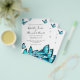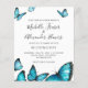 Borboletas trendy em aquarela azul. Convite de Casamento. Escolha elegante para casamentos de verão. Parte de uma coleção de casamento.