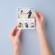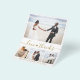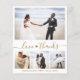 Orçamento, "Amor e Obrigados" Manuscrito Manuscrito Coração Elegante, Colagem de Fotos de Casamento Minimalista Obrigado Flyer em Dourado e Branco. Modelo de cartão de casamento simples com quatro (4) fotos na frente e uma foto no verso. Com o texto "Amor e obrigados" em um bonito script de fonte tipografia de cauda com letras maiúsculas e minúsculas. Adicione o seu nome e obrigado à sua mensagem.