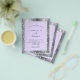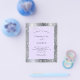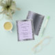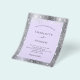 Um convite de casamento moderno e elegante. Falso metálico prateado e violeta, fundo roxo claro decorado com pó de brilho prateado falso. Personalize e adicione seus nomes e detalhes do casamento. Letras pretas.