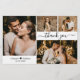 Budget, Elegant, Minimalist Hand Lettered Wedding 4 Photo Collage personalized affordable low budget flyer. Stylish wedding thank you paper template featuring four (4) photo on the front and one photo on the back. With the text "Thank you" in a swirly hand lettered typography script font with swash in black on white background. At the backing one horizontal photo and your thank you message template. ***PLEASE NOTE! *** BUDGET PAPER/FLYER IS PAPER THIN. NO ENVELOPES INCLUDED.*** UPGRADE THE PAPER FOR A THICKER PAPER. ***