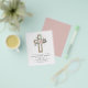 Daughter's Dusty Pink Rose and Sage Green Floral and Eucalyptus - Gold Foil Cross Botanical Greenery Watercolor Christian Religious Baptism Invitations.