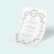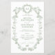 Elegant classic vintage antique traditional Victorian French floral sage green toile de jouy chinoiserie style crest monogrammed charming budget affordable all in one wedding invitation flyer with all the details, and QR code to RSVP on website. ++++++++++++++++++++++ PLEASE READ THIS BEFORE PURCHASING! This is a budget wedding invite printed on a FLYER (advertising type of paper). ++++ Please note that the BUDGET PAPER IS THIN. You can upgrade to have this card printed on cardstock. ++++ ENVELOPES ARE NOT INCLUDED. +++ Double-check all the information and spelling of your text because you will receive exactly what you see - no one else will check anything before printing. ++++ This card is designed for size 5.5" x 8.5".