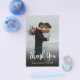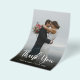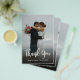 Budget, Modern Hand Lettered Script Wedding Photo Thank You personalized affordable low budget flyer. Modern Stylish wedding thank you paper template featuring a full vertical photo on the front with the text "Thank You" in a huge hand lettered typography brush script font (overlay) in white on the picture.