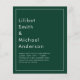 ⭐ NOTA: esta é uma opção de papel de panfleto de baixo orçamento. SATIN é o acabamento mais grosso aqui, matt é como papel. Envelopes NÃO incluídos. Para os pesos e tamanhos de papel mais tradicionais, veja a coleção anexada ou transfira o design através das ferramentas da página do seu produto para 'convite ou cartão postal, conforme necessário para o seu evento'. ⭐ Elegante monocromático e esmeralda do casamento verde. Para obter ajuda para criar um item personalizado exclusivo, acesse o DESIGNER LIVE LIVE do Zazzle ou use as ferramentas TRANSFERIR na página. ⭐ Visualize a coleção anexada e os 'produtos adicionais' para exibir o pacote de casamento de cheio com este design ou tema de cor. Isso pode incluir casamento e convites de chá de panela, convites para jantas de ensaio, convites para almoço para damas de honra, além de salvar a data, rsvp, etiquetas de favor, adesivos e muito mais. Adequado para primavera, verão, outono, outono, casamentos no inverno, interiores ou exteriores, montanha, lago, celeiro, campo, castelo, jardim, quintal. Toneladas de designs de excelente e opções para todos os orçamentos. ⭐ Modelo Design ©LeahG Founder of the LowBudgetWeddingNetwork® Para aconselhamento sobre planejamento de casamento, visite-nos através de www.weddingdesignchic.com. Aqui você vai acessar ideias de como planejar seu casamento perfeito de noiva de baixo orçamento, impressão listas gratuitas de casamento e fazer o download de um guia de planejamento de casamento imprimível.