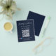 Chic promotional blue flyer for your business featuring your name in a stylish white signature script and business type below in simple modern white lettering. Input your website address to create a QR code for customers and clients to scan for appointments, products, services, hours, etc. Add your instagram and facebook handle for customers to follow you on social media.