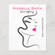 Este design delicado e elegante apresenta uma ilustração moderna e graciosa de uma mulher com cabelos macios e ondulados e lábios rosa vibrante. As linhas pretas limpas e a composição minimalista transmitem elegância e sofisticação, enquanto o toque sutil de cor adiciona um toque de feminilidade e charme. Perfeito para cabeleireiros, profissionais de beleza e extensões de cílios, salões e artistas de maquiagem que desejam uma imagem de marca refinada e contemporânea. A mistura elegante de tipografia clássica e moderna aprimora o visual profissional e sofisticado. Totalmente personalizável com os detalhes da sua empresa.