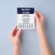 Este folheto para caminhoneiros tem linhas de texto de exibição que você pode editar para mostrar sua mensagem personalizada para atrair clientes para seu negócio de animais de estimação. Há rasgões na parte inferior onde você pode adicionar seu número de telefone.