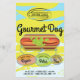 Chame a atenção de seus clientes com esse hot dog gourmet ilustrado por vetor brilhante. Todo o texto é editável e pode ser personalizado para o seu restaurante, etc... Clique em "personalizar" para obter mais modificações.