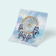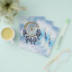 Um apanhador de sonhos que inclui o círculo redondo de bambu e miçangas vermelhas na teia com penas exóticas de pássaros-papagaios azuis em um fundo de pena de blues macio
