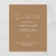 Foto de script chic salve o folheto de data com seus nomes, data de casamento, local e site de casamento em caligrafia de guião branco elegante e tipografia moderna em fundo de caramelo dourado. Basta adicionar seus detalhes pessoais e sua foto favorita! Desenvolvido exclusivamente para você pelo Happy Dolphin Studio. Se precisar de ajuda ou produtos correspondentes, entre em contato conosco através do bate-papo da loja. Estamos felizes em ajudá-lo a fazer seu casamento o dia mais bonito!