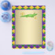 Cores tradicionais do Carnaval, roxo, verde e dourado com panfleto de Carnaval do jacaré. Você pode personalizar facilmente este divertido e festivo panfleto de Carnaval para o seu evento, adicionando seus detalhes no estilo de fonte e cor, e na redação de sua escolha.