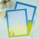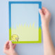 Um desenho animado de pássaros amarelo giro e engraçado sobre a grama e fundo do céu.