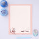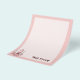 Cartoon de chef rosa com bigode segurando faca e garfo de cozinhar. Cor de fundo personalizada. Texto personalizado de ambos os lados.
