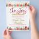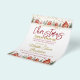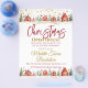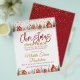 Um belo convite de festas de negócios da Open House. Este glamouroso design de ouro e feriado vermelho mostra uma cena de rua nevada com casas e árvores. Fácil de personalizar com os seus próprios detalhes de evento de casa aberta de Feriado.