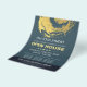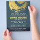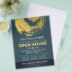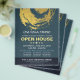 YOGA Massage Therapy Studio / Beauty Salon Open House Flyer Modelo - Elegante Blue e Faux Gold Foil Brushstrokes ZEN Symbol. Ideal para instrutor de meditação YOGA / terapia de massagem / salão de beleza de maquinação / lista de cabelo / lista de cabelos, lista de estilos, cosmetólogo, especialista em beleza e profissionais criativos. Fácil de personalizar com seu próprio texto e imagens - torne-o seu.