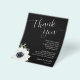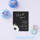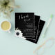 Os folhetos de papel leve de 4,5" x 5,6" com orçamento de barato apresentam os seus detalhes em letras brancas chic, acentuadas com uma flor preta e branca sobre fundo preto. Estes lugares são perfeitos para colocar em cima dos pratos no seu janto de ensaio de casamento ou na sua recepção de casamento. CORRESPONDENTE a itens na nossa coleção.